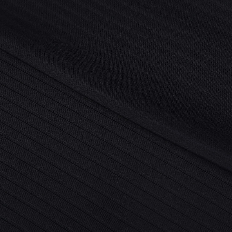 Comhcheanglaíonn an fabraic poileistear-spandex poileistir-stríocach Jacquard le chéile feidhmíocht poileistir agus spandex. Is é an uimhir fabraice ná "T/OP 85/15 T50/40DOP 61"/63 "*200GSM", a chuireann sonraí ar a chóimheas comhdhéanaimh agus a shonraíochtaí: is ionann poileistir agus suas le 85%, ag cinntiú go bhfuil friotaíocht na fabraice, frithsheasmhacht in aghaidh an tsolais agus an dath maith dath, agus go dtabharfaidh an 15% eile spandex don elasticity fabraice agus go dtabharfaidh an t -aisghabháil an t -am compordach a thugann an fuiltiú don chruth compordach. Tá an próiseas fíodóireachta sonrach nó patrún Jacquard sa dearadh fabraice saibhir ó thaobh amhairc de i sraitheanna, faiseanta agus dinimiciúil, agus cuireann sé le huigeacht agus le uathúlacht na fabraice. Is é an leithead fabraice ná "61"/63 ", atá thart ar 155 go 160 cm. Soláthraíonn an leithead seo spás ábhair leordhóthanach chun bríste a ghearradh agus a tháirgeadh, rud a fhágann go bhfuil sé níos éasca do dhearthóirí agus do thailigh súgradh iomlán a thabhairt dá gcruthaitheacht agus cruth trócaire faiseanta agus faiseanta a chruthú. Tá marthanacht na fabraice, ach cuireann sé san áireamh freisin gile agus breathability caitheamh, agus tá sé oiriúnach le caitheamh i ngach séasúr.